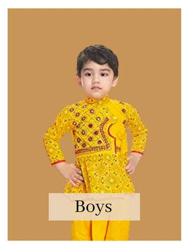 Boys Traditional Full Sleeve Rajasthani Angrakha Dress with Dhoti for Boys/Kids 100% Cotton Yellow - 6M - 12M