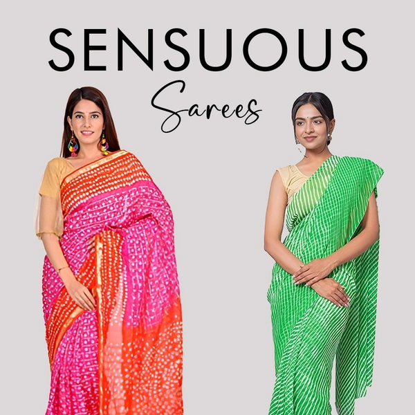 PK HUB® Women's Chiffon Bandhnai Printed Saree With Blouse Piece - Blue