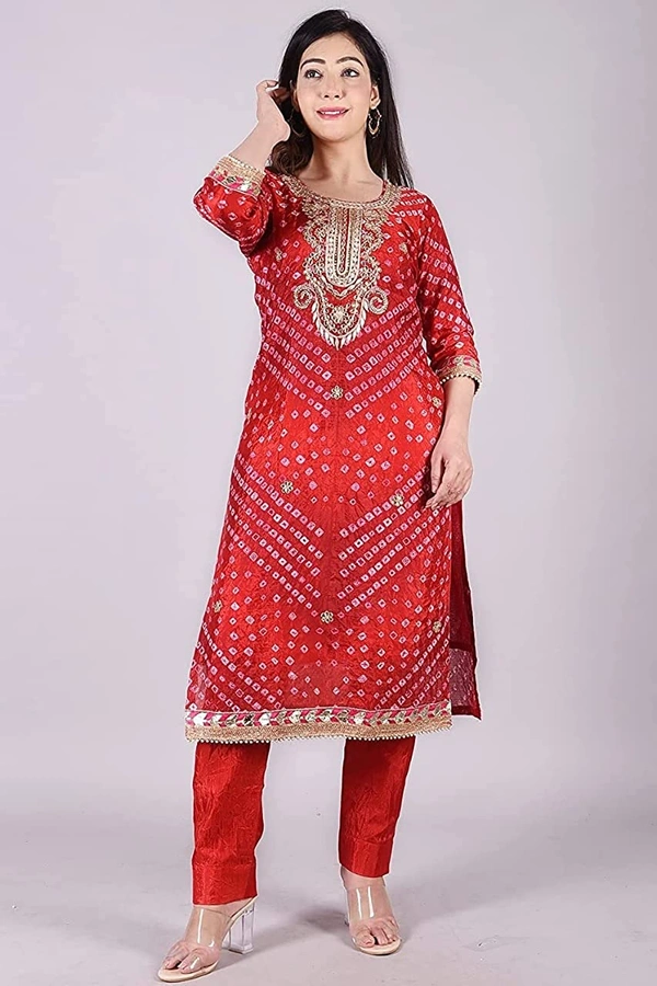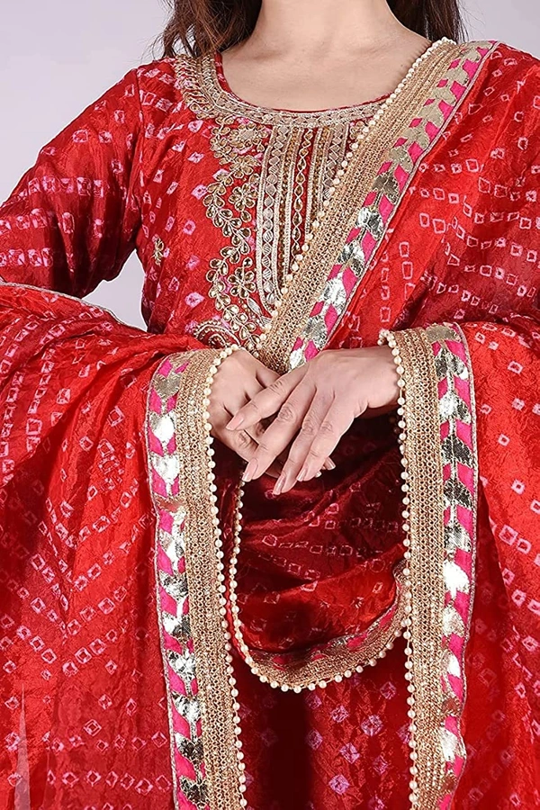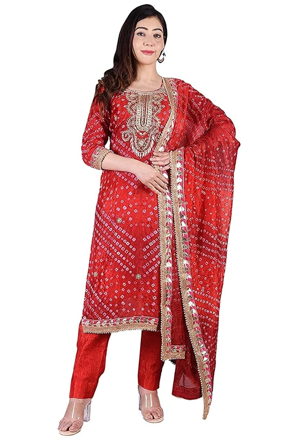 Art Silk Bandhani Gota Patti Work Un-Stitched Salwar Suit Dress Material
