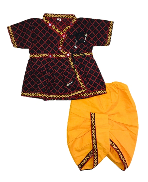 Boys Kids Ethnic Printed Design Cotton Dhoti Kurta Chaniya Choli Set For Casual, Festival, occasional Boys set
