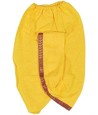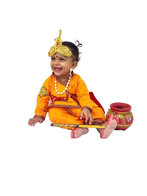 Krishna Kids Ethnic wear Costume in Cotton Fabric,Krishna Dress Yellow (Pack of 8 - Kurta, Dhoti, Bansuri, Mor Pankh, Mukut, Bandhni, Kundal, Mala)