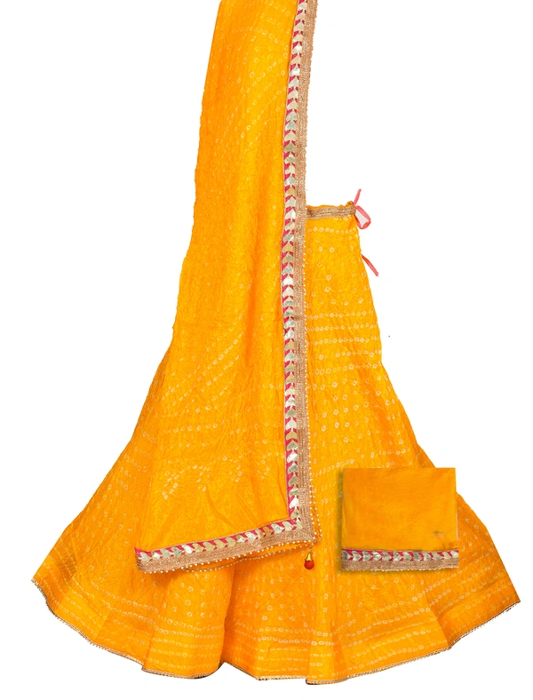 Lehenga Georgette with Bandhej Dupatta With Gota Patti Border & Dupin Blouse, Free Size