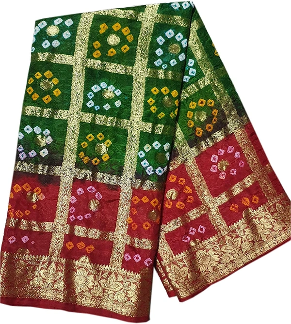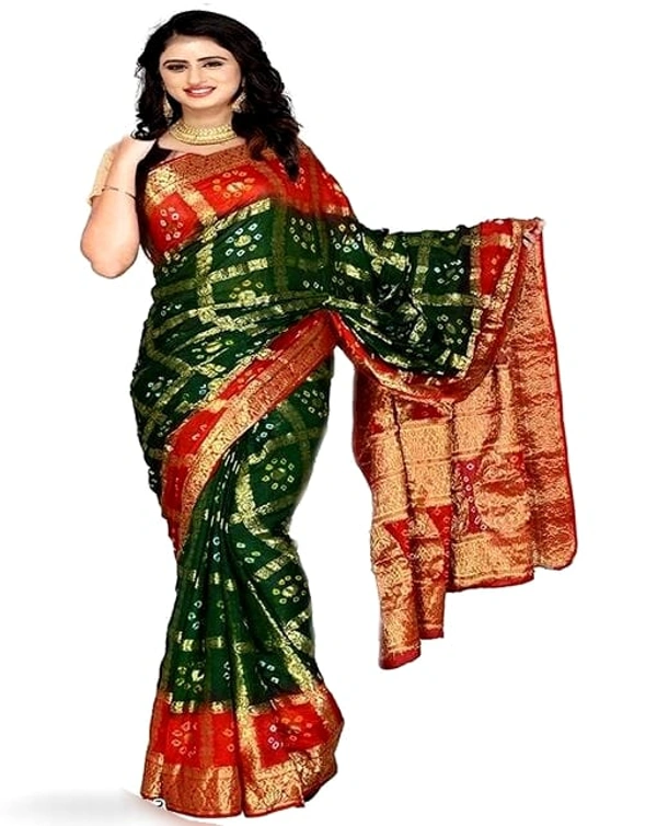 PK HUB BANDHANI Women's Jaipuri Rajasthani Art Silk Bandhani Bandhej Banarasi Gharchola Saree