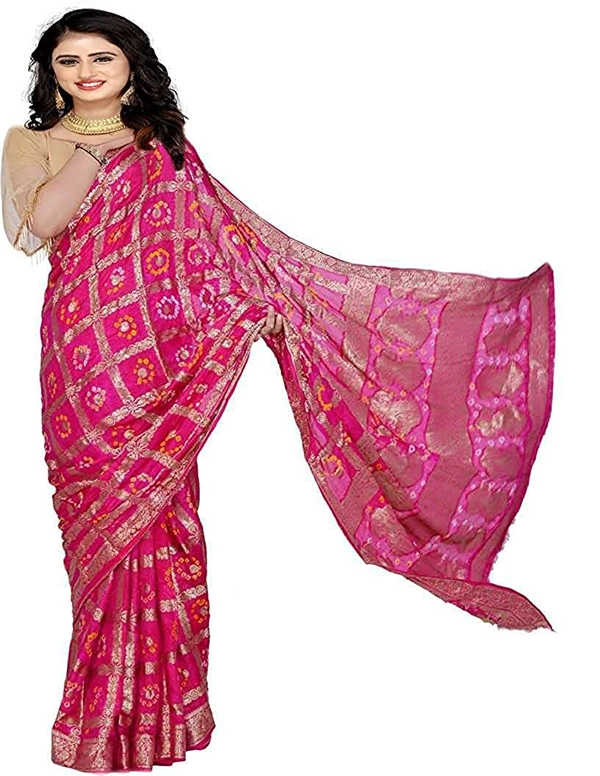 PK HUB BANDHANI Women's Jaipuri Rajasthani Art Silk Bandhani Bandhej Banarasi Gharchola Saree