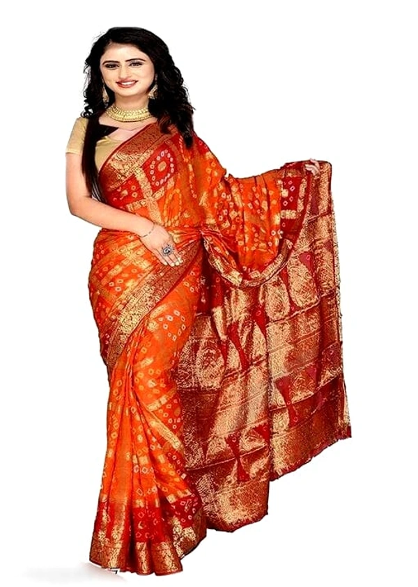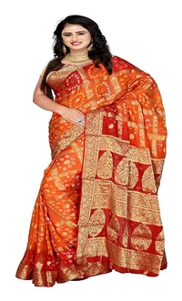 PK HUB BANDHANI Women's Jaipuri Rajasthani Art Silk Bandhani Bandhej Banarasi Gharchola Saree