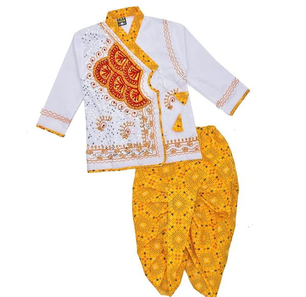 PK HUB® Boys Traditional Full Sleeve Rajasthani Angrakha Dress with Dhoti for Boys/Kids 100% Cotton