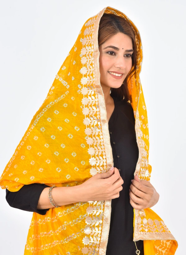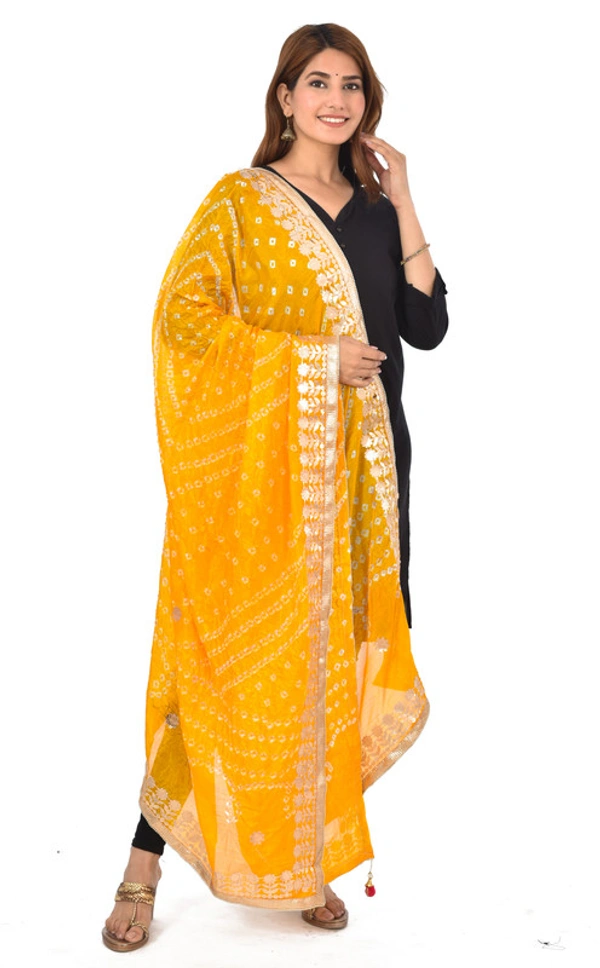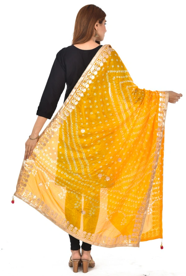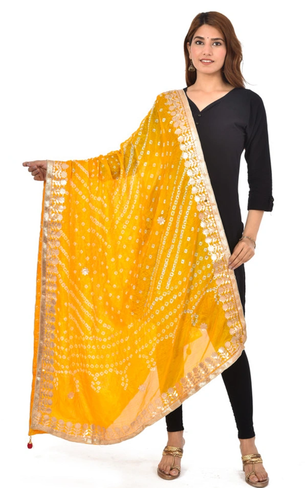PK HUB® Dresses Jaipuri Rajasthani Women's Art Silk Bandhani Bandhej Dupatta With Heavy Gota Patti Work (Free size)