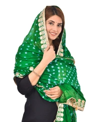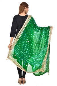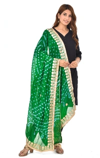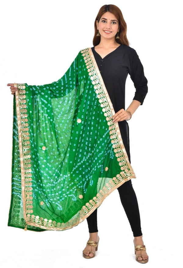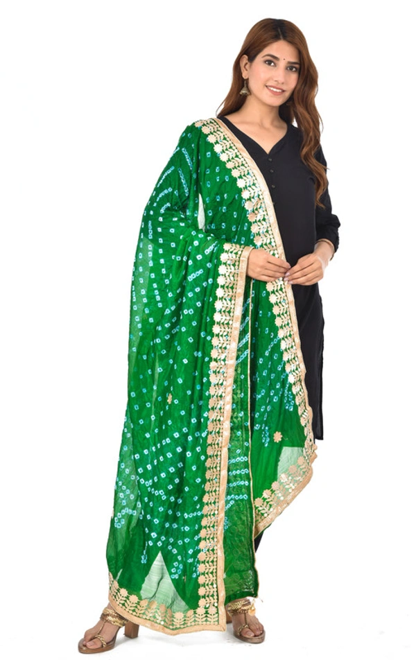 PK HUB® Dresses Jaipuri Rajasthani Women's Art Silk Bandhani Bandhej Dupatta With Heavy Gota Patti Work (Free size)