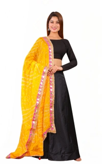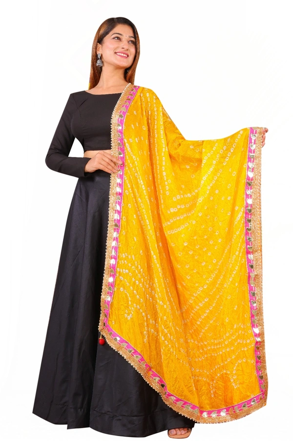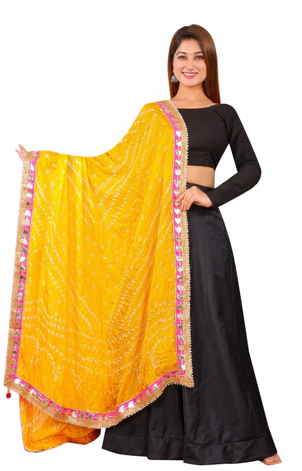 PK HUB Dresses Jaipuri Rajasthani Women's Art Silk Bandhani Bandhej Dupatta With Heavy GOTA PATTI WORK
