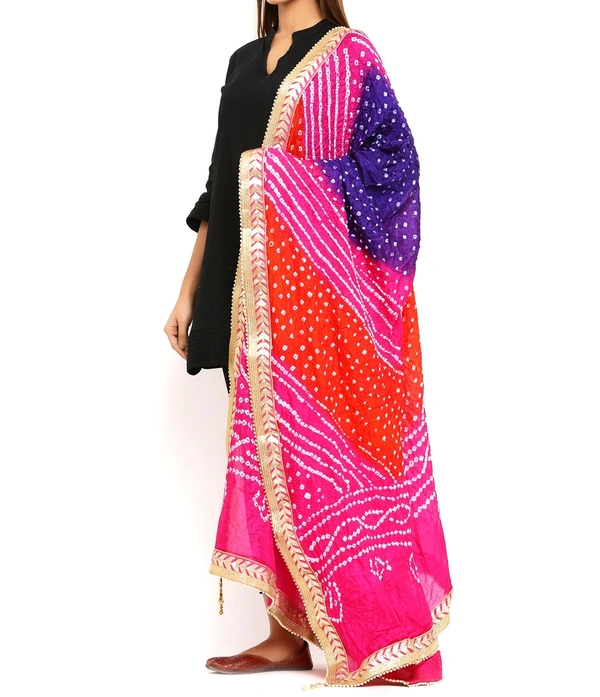 PK HUB jaipuri rajasthani women's art silk bandhej bandhani dupattas