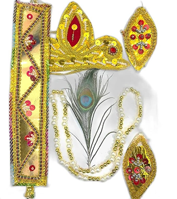 PK HUB® Kid's Krishna Kit, Bansuri, Mor Pankh, Mukut, Bandhani, Mala, Kundal