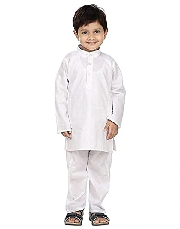 PK HUB Kids White Cotton Kurta Pyjama Set