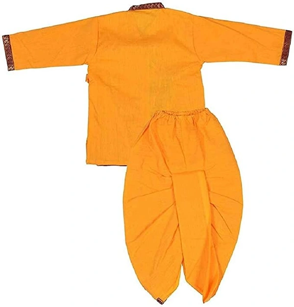 PK HUB® Krishna Dress Costume | Kids Cotton Yellow Krishna Style Kurta & Dhoti| Janamastami Special | Bal Gopal Dress for Baby Girls & Boys | Morepankh Printed Design