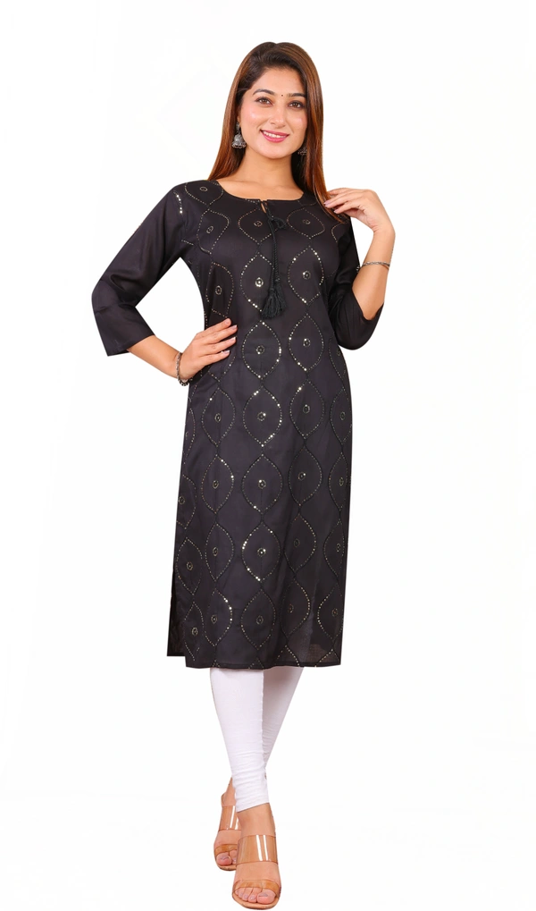 PK HUB Women Embroidered Straight Kurta, Rayon Embroidered Straight Kurtis for Women and Girls blue and black