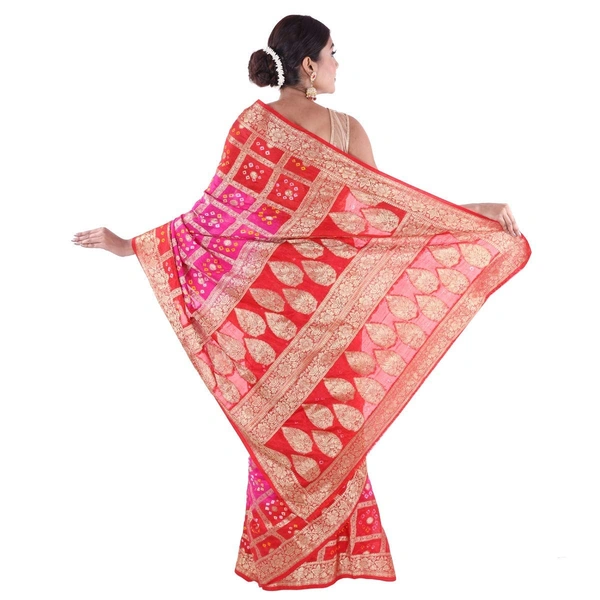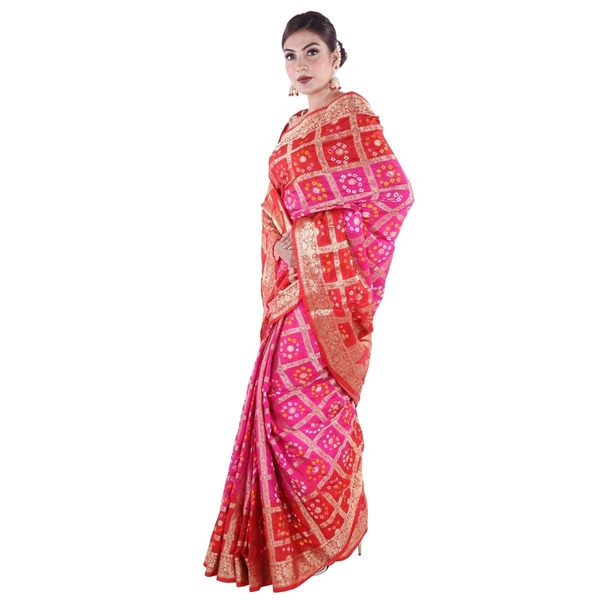 PK HUB Women's Bandhani Faux Silk Saree With Blouse Piece (Gharchola Saree Red Pink_Red Pink)