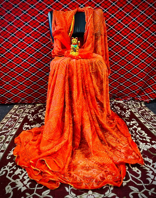 PK HUB Women's Chiffon BANDHANI Saree With Blouse Piece