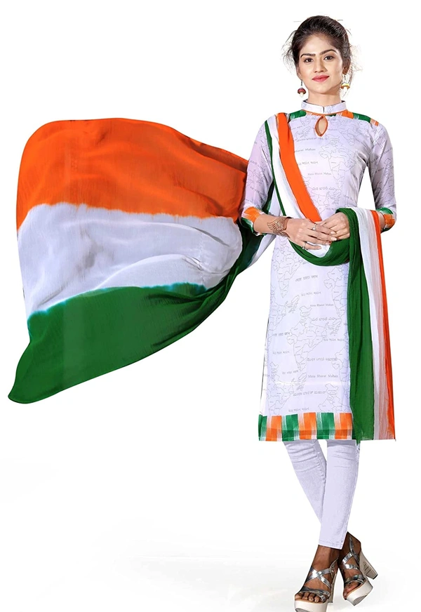 PK HUB Womens Chiffon Dupatta Tricolour - Tiranga (Republic/Independence Day Special)