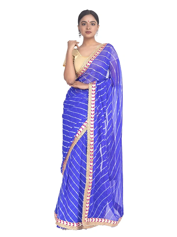 PK HUB® Women's & Girl's Leheriya Chiffon Moti less gota patti border Saree With Blouse Piece
