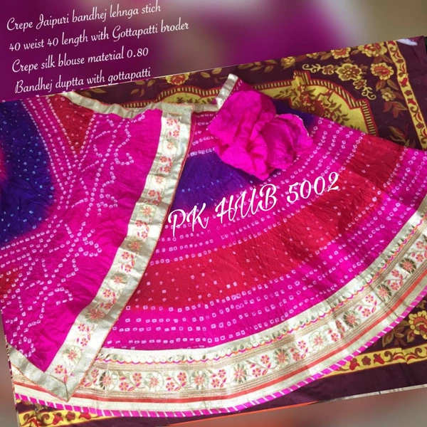 PK HUB Women's Jaipuri Crepe Lehenga Choli with Art Silk bandhej Dupatta Gota Patti Work