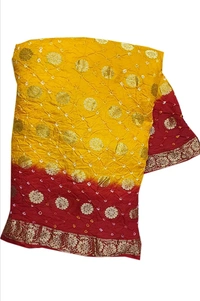 PK HUB Women's Jaipuri Rajasthani Art Silk Bandhani Bandhej Banarasi Gharchola Saree(black)