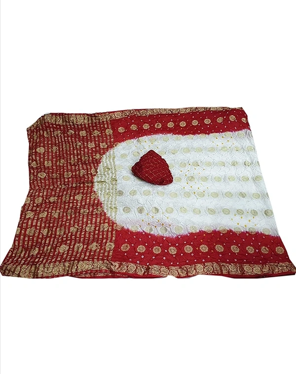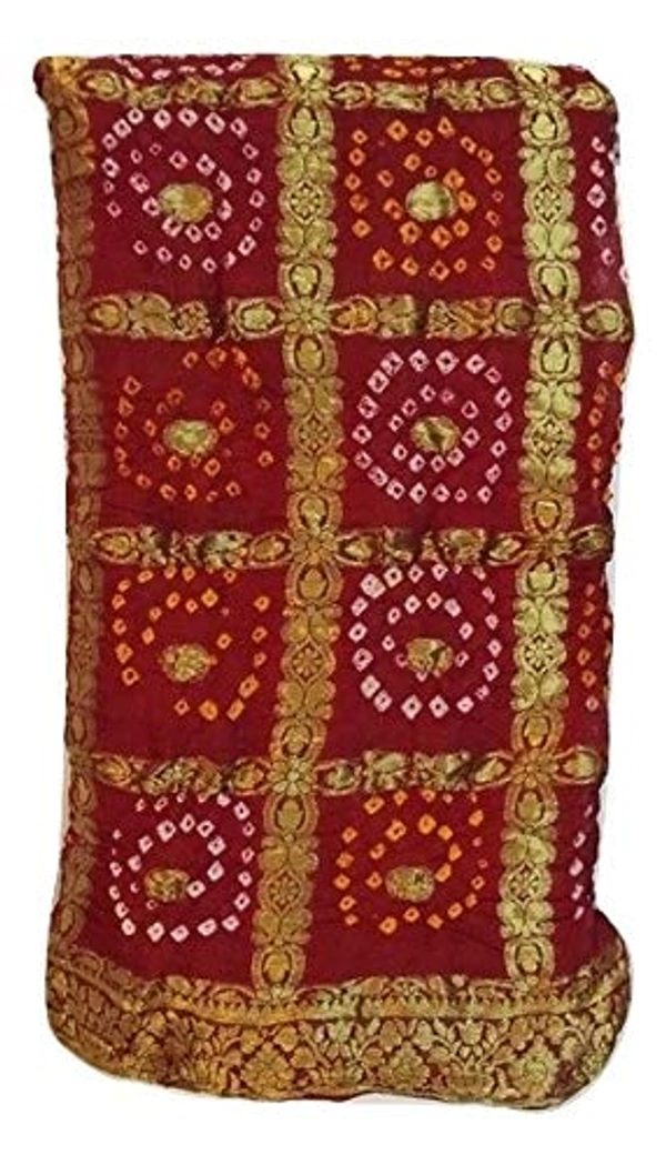 PK HUB Women's Jaipuri Rajasthani Art Silk Bandhani Bandhej Banarasi Gharchola Saree(Marron)