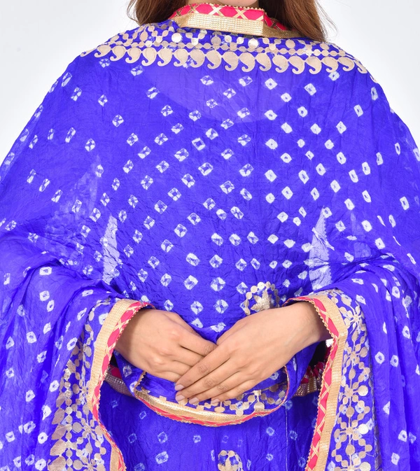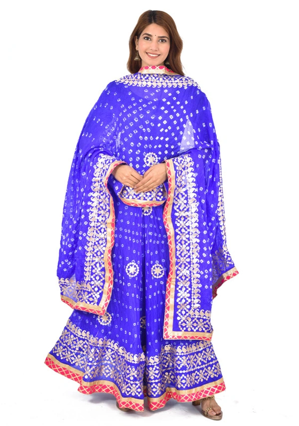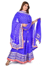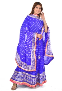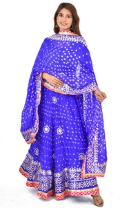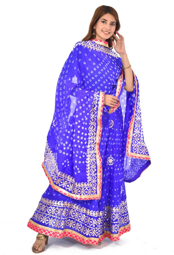 PK HUB Women's Rajasthani Traditional Bhandej Hand Gota Patti Work Lehnga Chunni Set