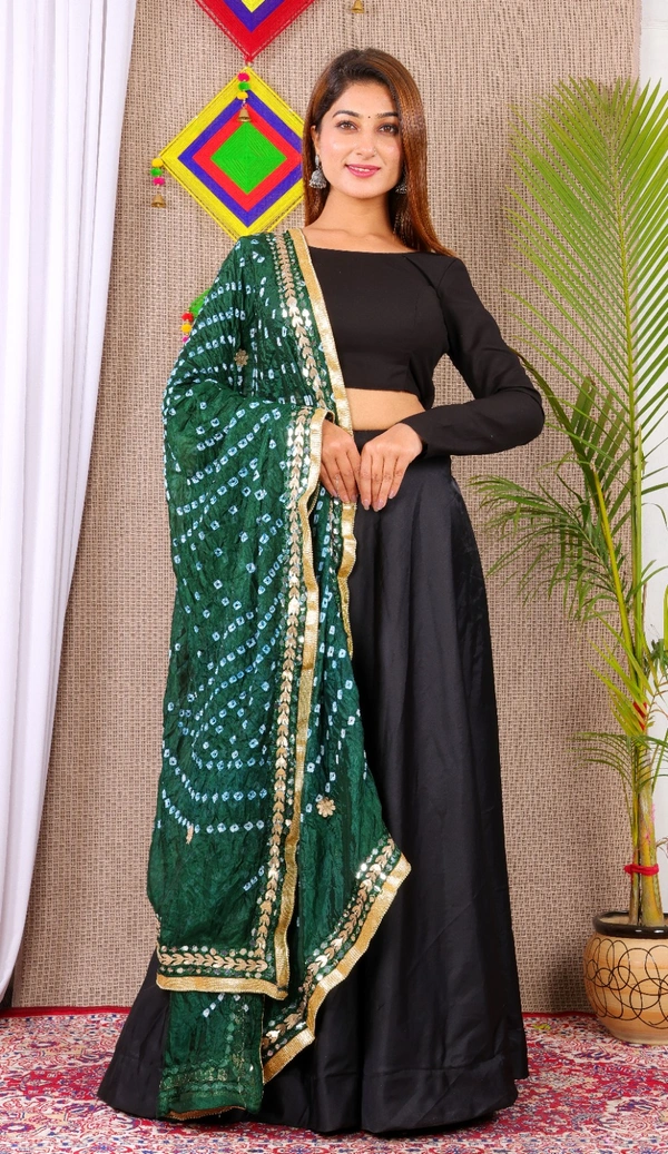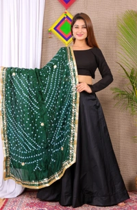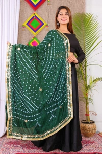 PK MART Dresses Jaipuri Rajasthani Women's Art Silk Bandhani Bandhej Dupatta With Heavy Mirror Work (Free size)