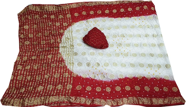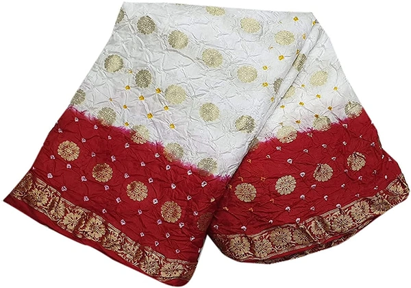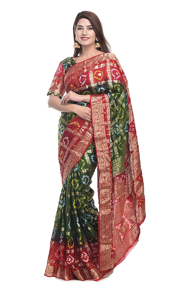PK MART Women's art silk Zari butti Handmade Bandhej saree with zari weaving border fabric