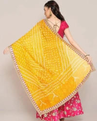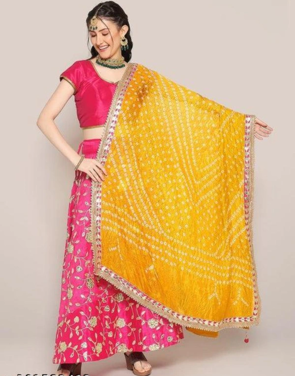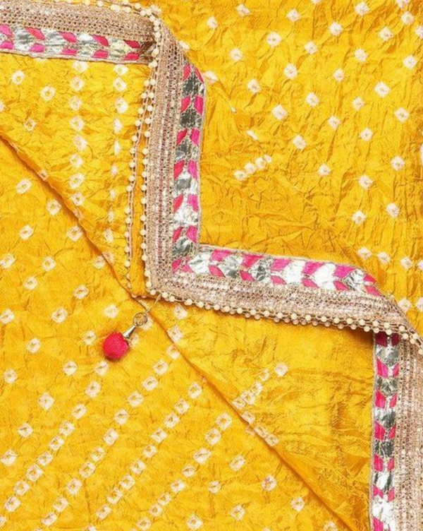 PK MART Women's Silk Jaipuri Rajasthani Bandhani Bandhej Heavy Dupatta with Gota Work and Latkan
