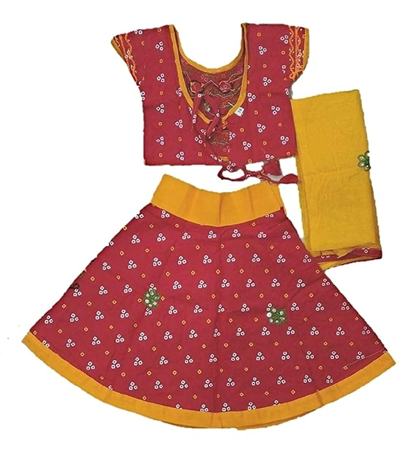 Traditional Navratri Garba Special Cotton Chaniya Choli With Embroidered Mirror Work With Dupatta For Kids Girl's